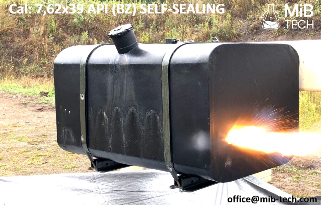 Special coating that seals after bullet penetration ensuring the vehicle can continue operation after its fuel tank has been shot